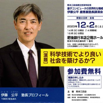 熊本三田会の主催により「伊藤公平塾⾧の講演会」が以下の通り開催されます。是非ご参…