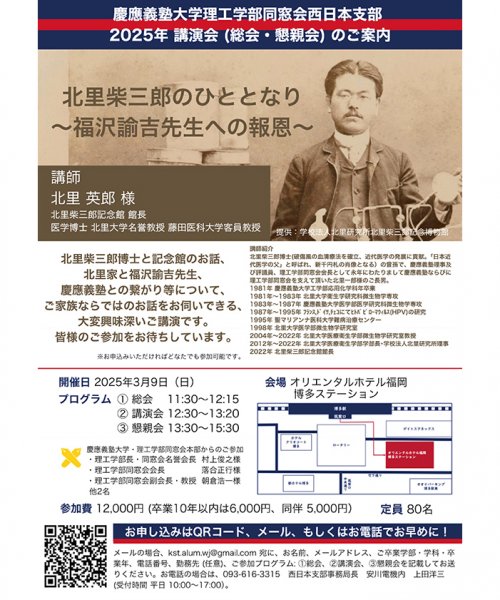 慶應義塾大学理工学部同窓会西日本支部より福岡三田会の皆さまへ以下の通り、 講演会・懇親会のご案内がありました。